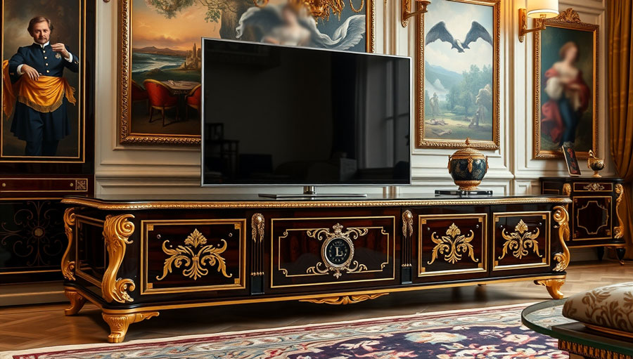 میز تلویزیون سلطنتی به دلیل طراحی خاص و استفاده از متریالهای گرانبها و تزئینات لاکچری همیشه یکی از انتخابهای محبوب افرادی بوده است که به دنبال دکوراسیونی فاخر و مجلل هستند. این نوع میزها معمولاً با چوبهای باکیفیت مانند چوب راش یا بلوط ساخته میشوند و در برخی از مدلها از تزئینات طلایی یا نقرهای برای افزودن جلوهای شیک و لوکس استفاده میشود.