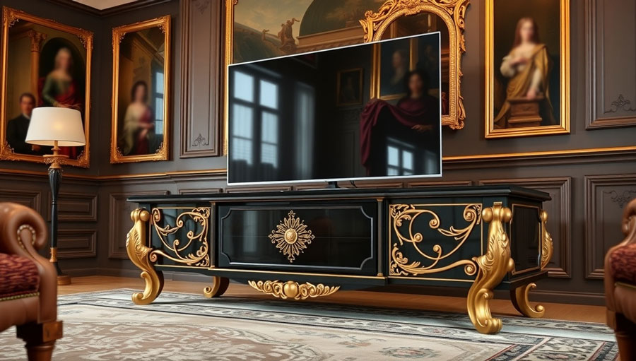 میز تلویزیون سلطنتی با طراحی زیبا و اصیل خود، به دکوراسیون خانه شما جلوهای لوکس و ماندگار میبخشد و میتواند فضایی شیک و دلنشین ایجاد کند.